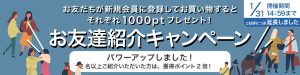 新規会員登録&お買い物で、紹介者・友人双方に1,000ポイントプレゼント(複数紹介で2倍)