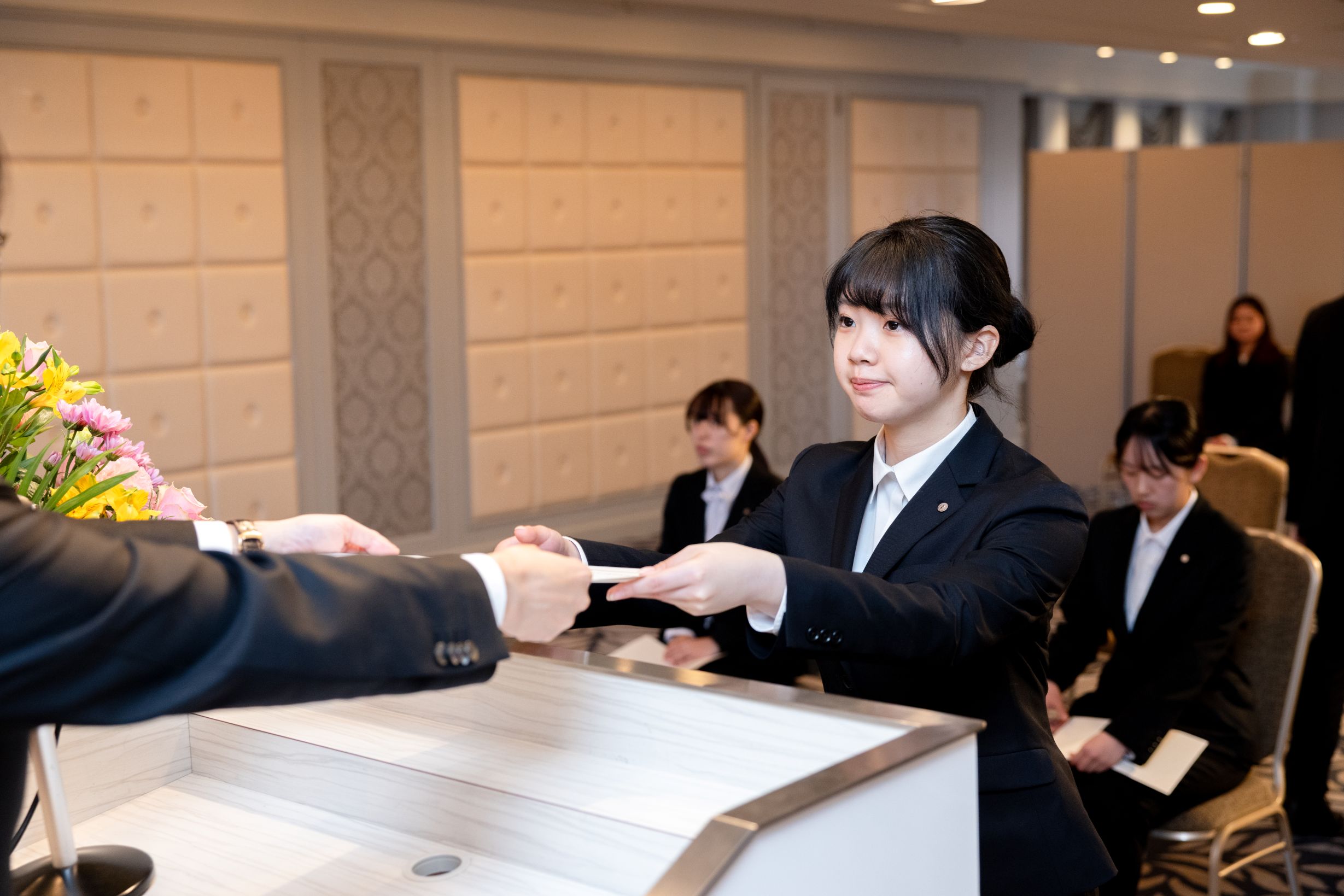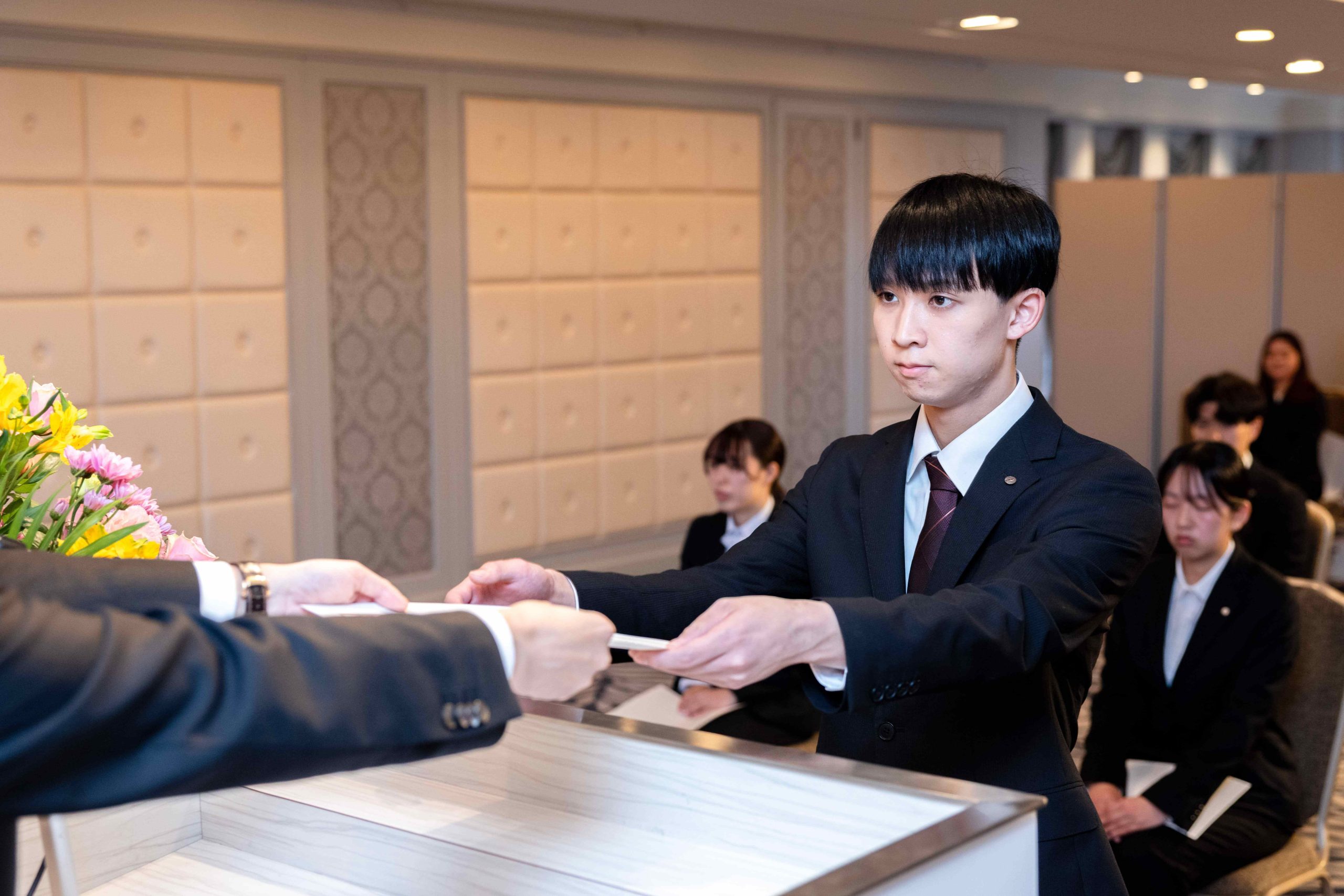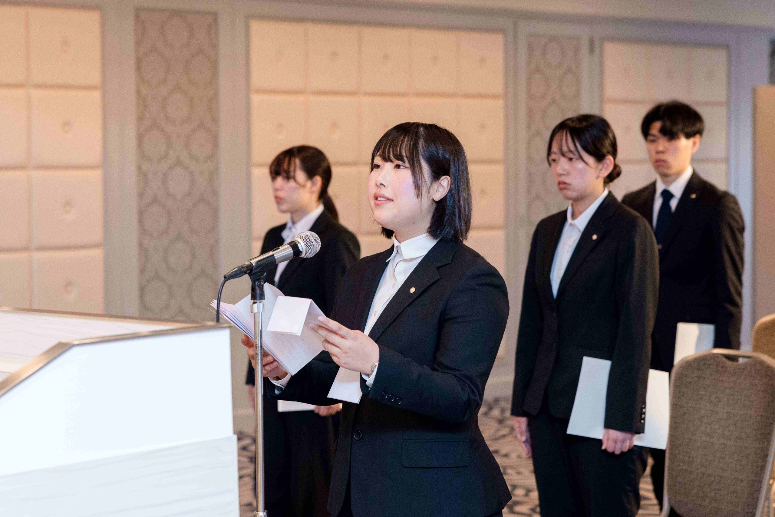 高層階の見晴らしの良い会場にて、新社会人として第一歩を踏み出すにふさわしい厳かな雰囲気の中、式典が執り行われました。