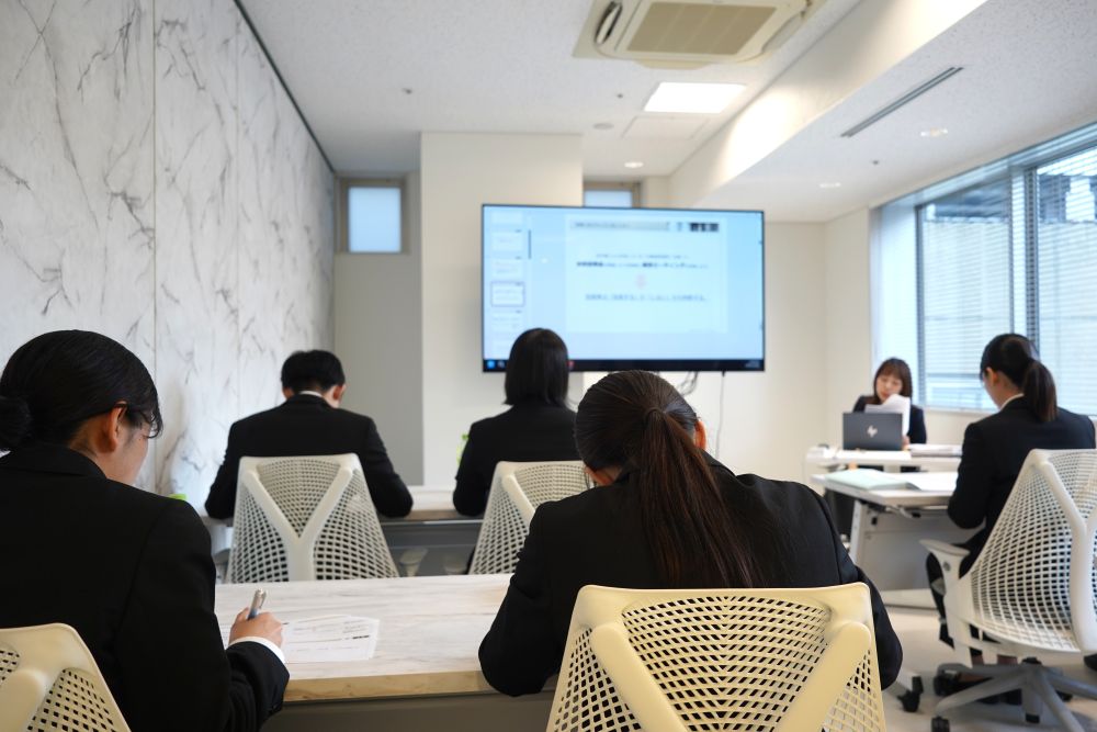 新入社員研修ではシュッピンの全ての部署の紹介・見学や、東証プライム上場企業の社員として必要な基礎知識、そして柔軟な発想力を鍛えるワークを設けるなど、シュッピンという会社を余すことなく触れることのできる研修を企画。また新卒先輩とのざっくばらんな質問会なども設けたことで不安を解消し、これからシュッピンの一員としての日々がスタートしたことを実感されていました。